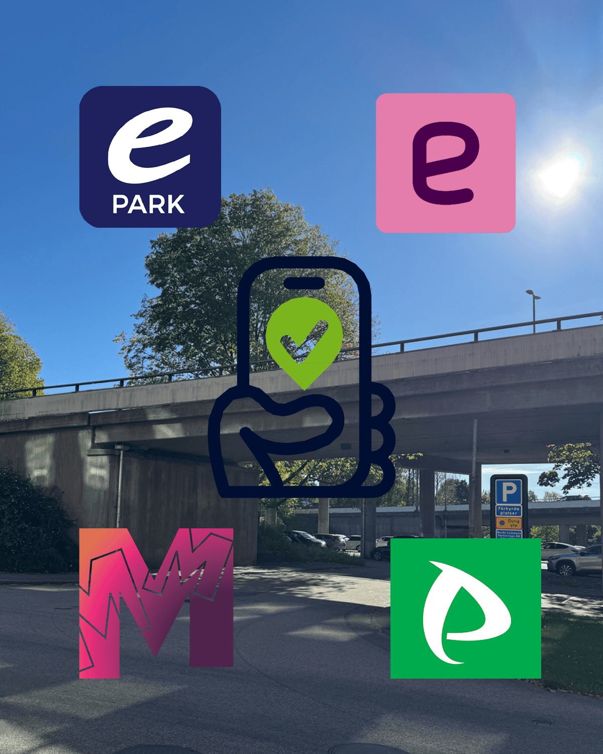 Borås Kommuns Parkerings AB does not charge any additional fees for these services. We ensure that the app providers offer their apps at no extra cost to you. In our parking areas, you can choose to pay with one of these four apps: